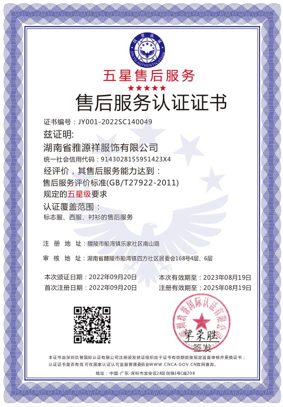 售后服務(wù)認(rèn)證證書