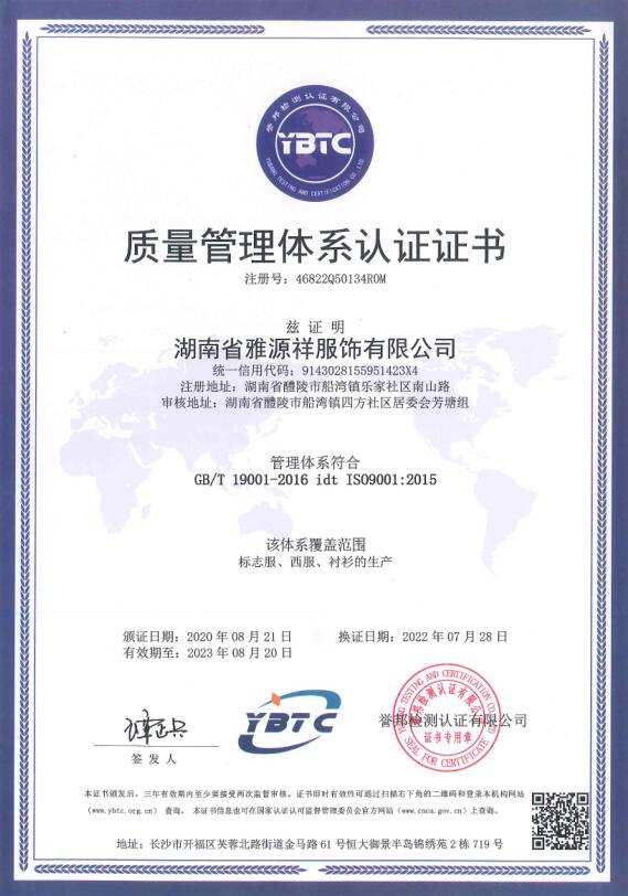 1、企業(yè)概況 湖南省雅源祥服飾有限公司地處湘贛邊境素有瓷城之稱的醴陵郊區(qū),企業(yè)創(chuàng)建于1995年,是行政執(zhí)法制服、被裝的生產(chǎn)企業(yè)。2、組織機構(gòu) 跟隨改革開放的步伐,我公司不斷發(fā)展壯大,公司董事會下設(shè)總經(jīng)理辦公室、生產(chǎn)部、技術(shù)部、質(zhì)檢部、財務(wù)部、采購部、業(yè)務(wù)部等部門,下設(shè)有流水線西服生產(chǎn)車間、標(biāo)志服生產(chǎn)車間、襯衣生產(chǎn)車間、... [更多]